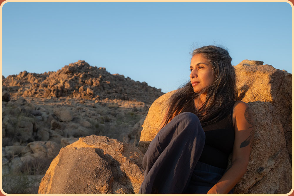 At its core, it’s a writing workshop intended to give participants an experiential immersion and tools with which to re-story themselves and re-story the land through the art of storytelling. Utilizing Somatic Experiencing & ecosomatic practices, we will feel and sense how the land and our natural environment influences and affects our subjective experiences – our interiority – and then move into expression of that through writing. The experience is facilitated by writer, storyteller, mentor & consultant Rohini Walker. She is also the co-creator of the Mojave high desert based print periodical, Luna Arcana.